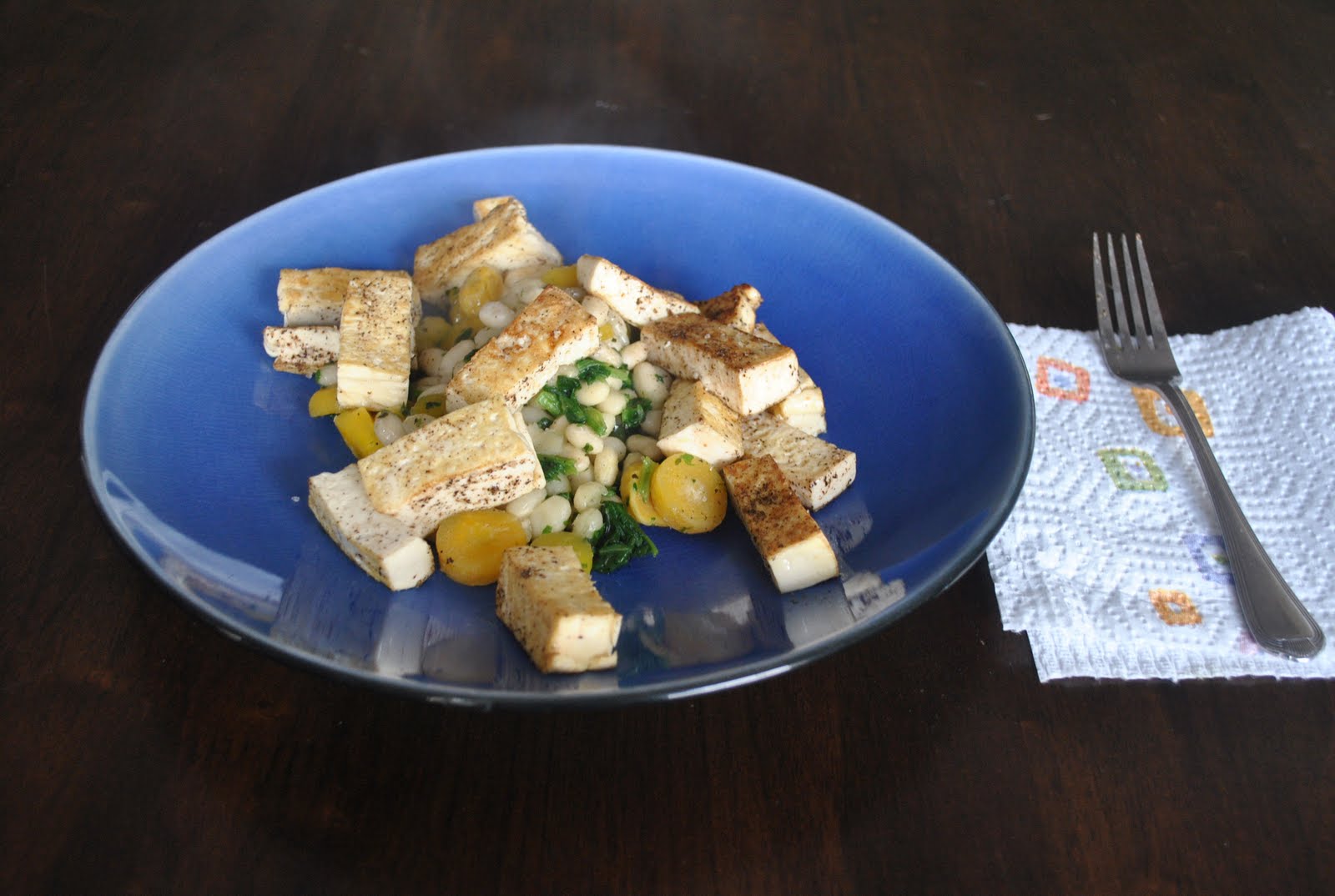 Yesterday Lunch. My favorite Green Giant side dish paired with some SERIOUSLY over-peppered tofu. Woopsie.